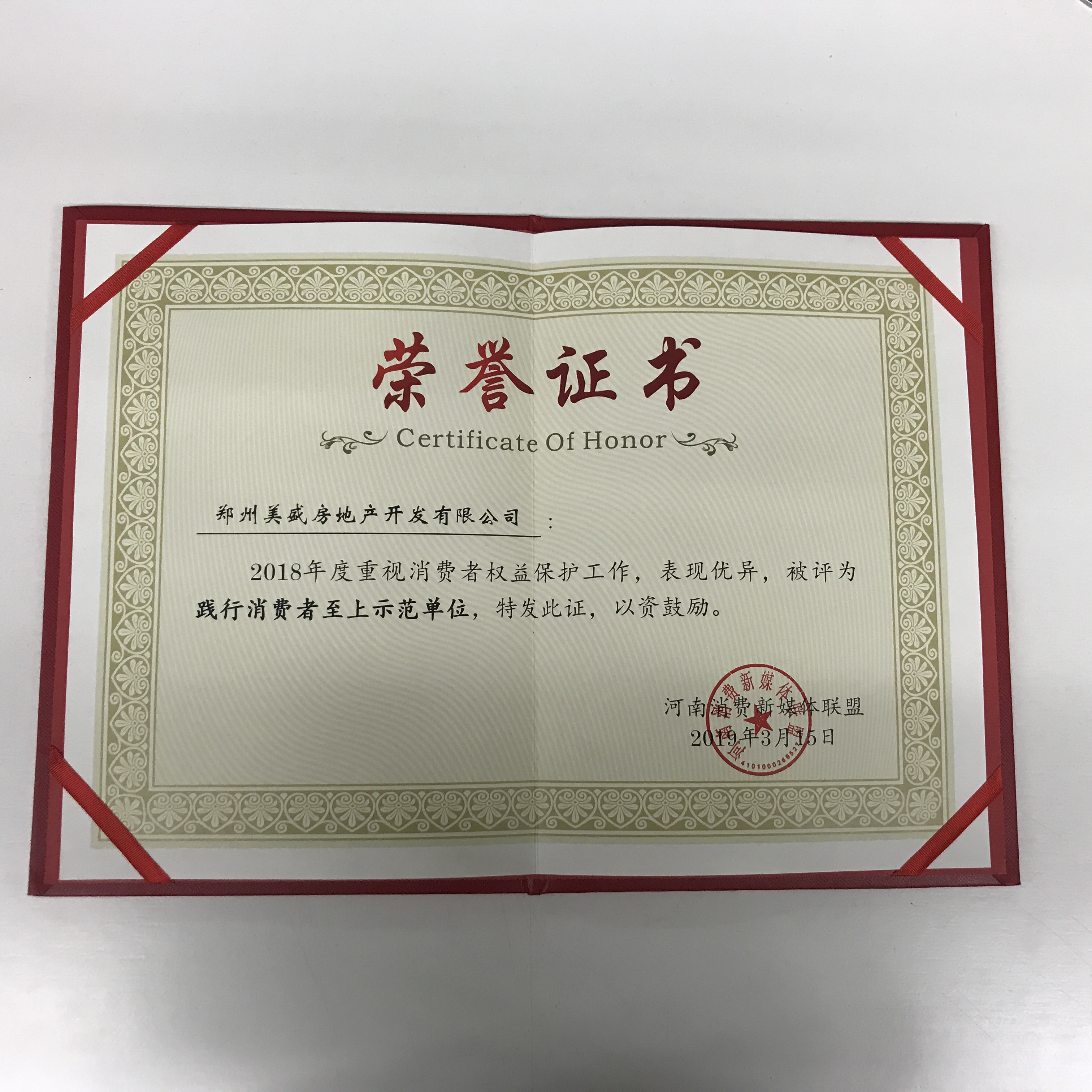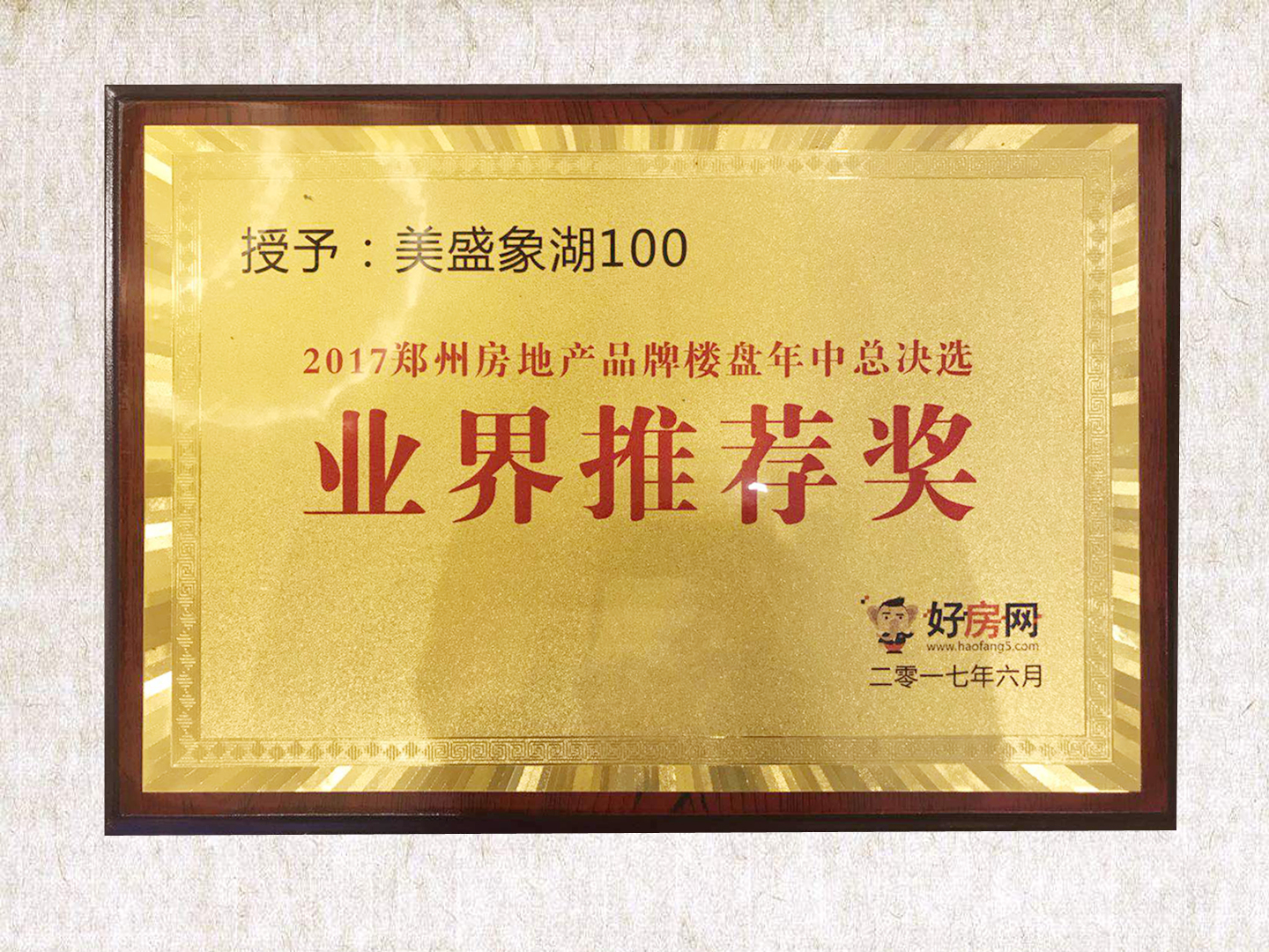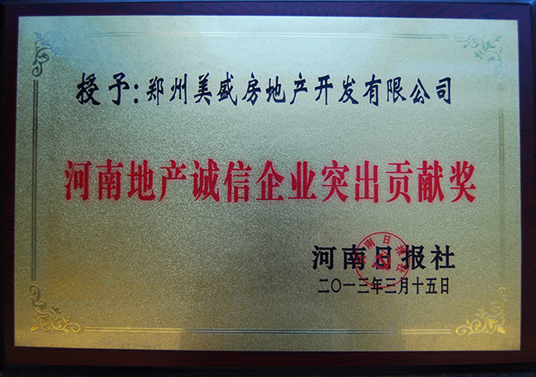 美盛地產-河南地產誠信企業突出貢獻獎 -