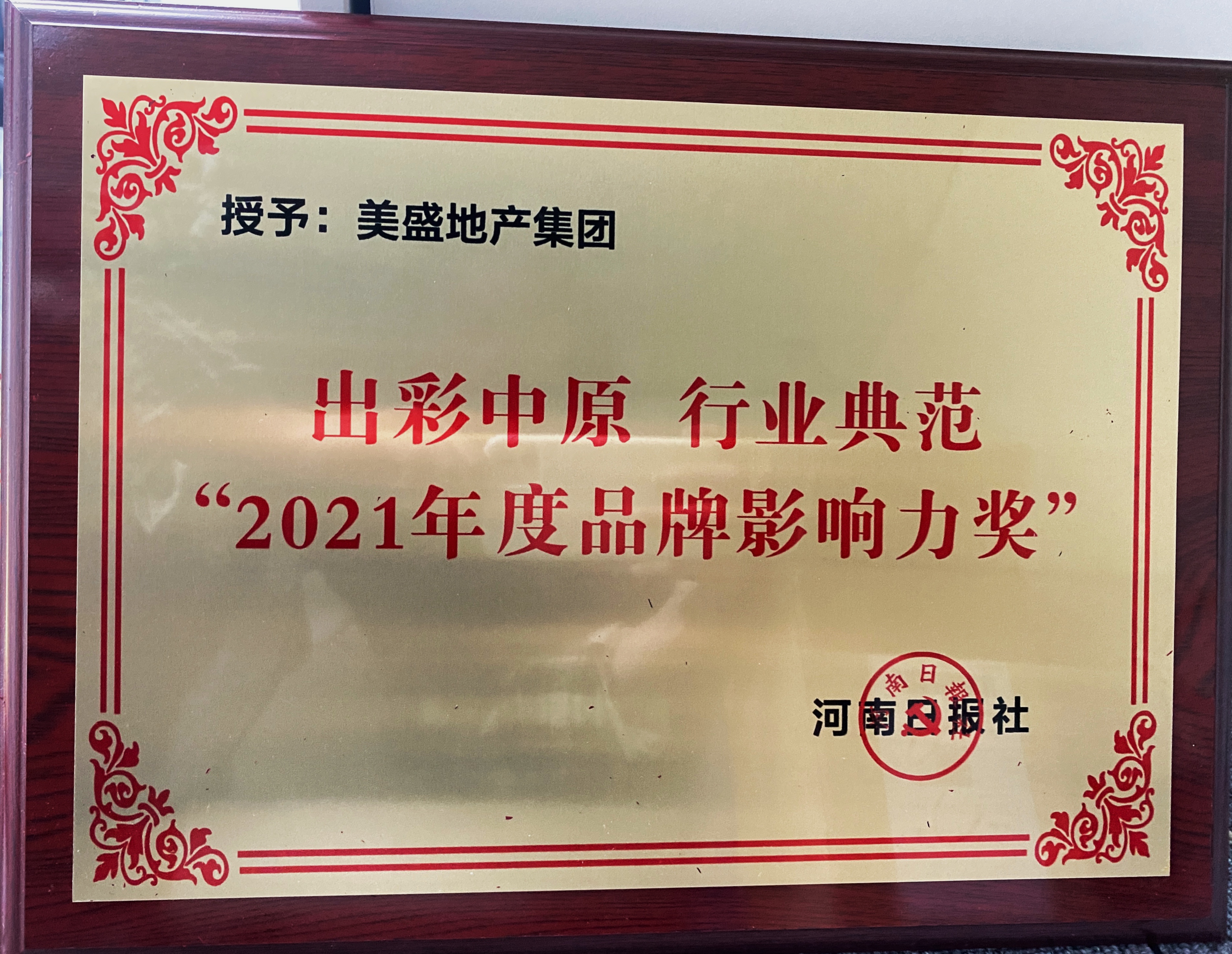 出彩中原 行業典范 2021年度品牌影響力獎 美盛集團 -