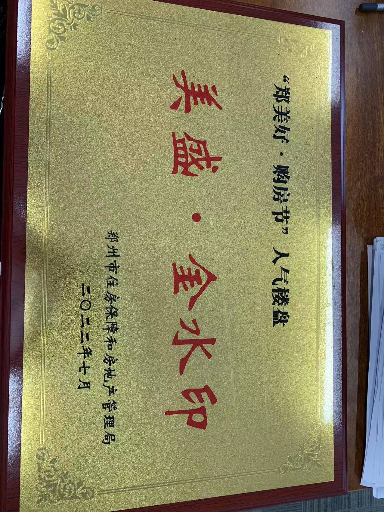 出彩中原 行業典范 2021年度區域價值獎 美盛·金水印 -