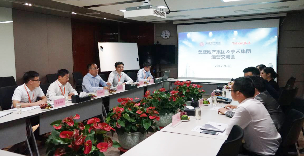 首頁 > 新聞中心 > 公司新聞2017年9月28日下午,美盛地產(chǎn)集團(tuán)與泰禾集團(tuán)(上市公司,全國地產(chǎn)30強(qiáng))鄭州泰禾置業(yè)集團(tuán)有限公司運(yùn)營交流會(huì)在集團(tuán)大會(huì)議室舉行,美盛地產(chǎn)集團(tuán)副總裁韓震洲、鄭州泰禾置業(yè)集團(tuán)有限公司總經(jīng)理助理任軍,以及雙方運(yùn)營團(tuán)隊(duì)出席了本次活動(dòng)。
