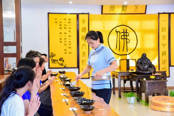一粥一飯當思來之不易。經行體驗結束,業主們享受了難得的禪意素齋,在獨特的用齋環境里,入口的每一粒食物,都蘊含著對佛理的感悟,也都包含著美盛地產集團對禪文化的美好傳承。