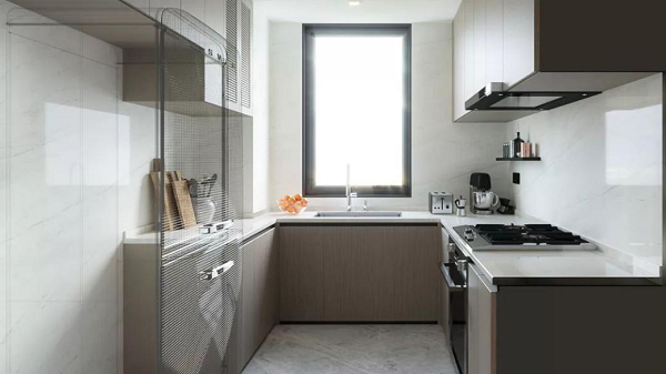 高效利用的廚房空間,U型設計,布局合理,進退自如;奢闊客廳與餐廳、廚房一線貫通,精良工藝,處處演繹經典不凡。