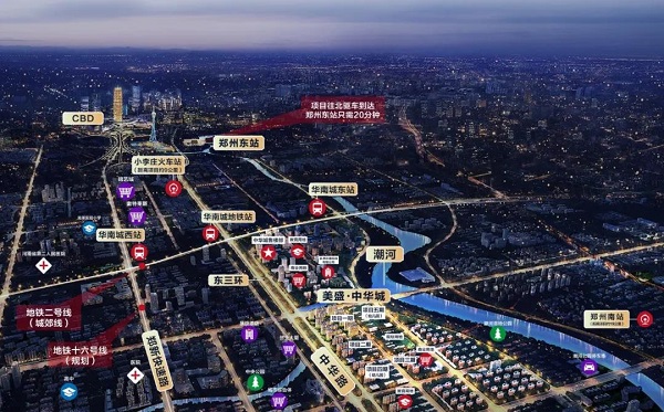 一條東三環,迭新城芯史。東三環自北向南依次串聯起北龍湖、CBD、高鐵站、濱河國際新城等高端住區。美盛·中華城屹立于東三環城央正脈之上,鄭州融港、融鄭的三區交匯核芯,享四縱三橫雙地鐵(2號線、16號線(規劃中))、高鐵、輕軌等多維便捷交通,進退之間,預見城市發展航向。