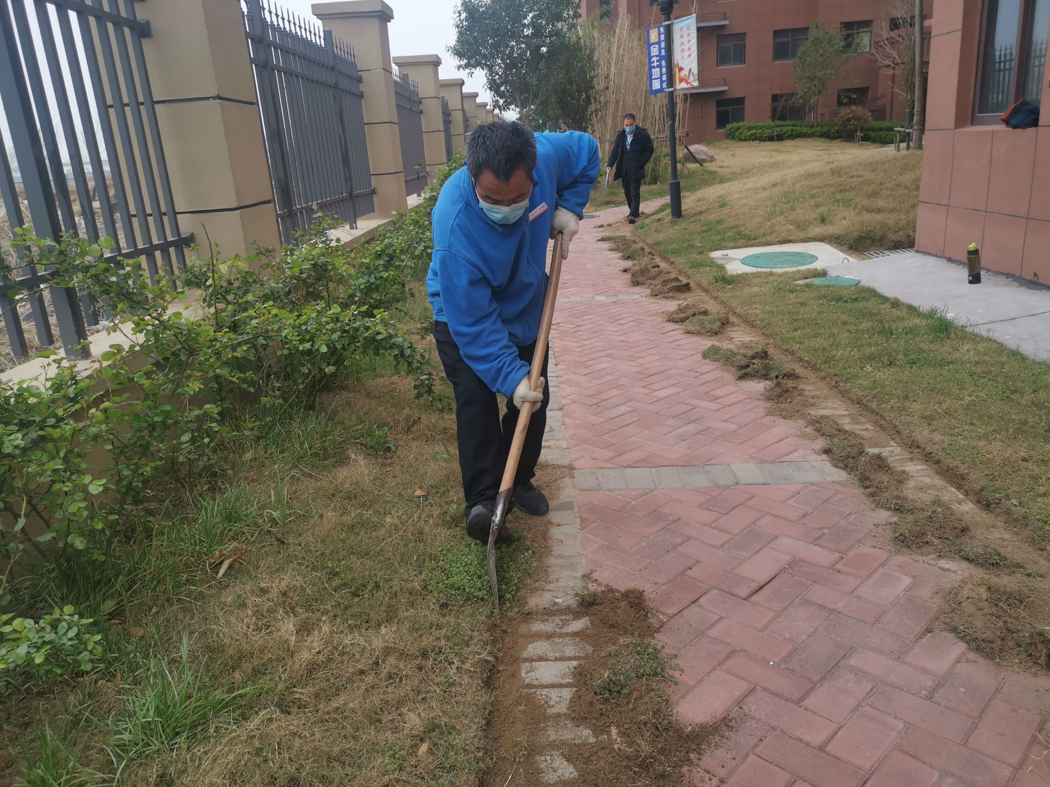 第一次在項(xiàng)目上見到他,他在低頭拿著鐵锨認(rèn)真的整理綠化帶的隔離溝,說話的時(shí)候,沒有停止手中的工作,只是抬頭靦腆的笑笑又繼續(xù)投入到工作中。春天萬物復(fù)蘇,草坪里的花草經(jīng)過一冬天的洗禮,開始瘋長,草根隨著地磚蔓延到道路,盤根錯(cuò)節(jié)的很難清理,花草就像做人也需要適時(shí)的梳理,才能長得更好。于是王師傅想到一個(gè)辦法,利用每天工作之余專門挖綠化隔離溝。跟他交談的時(shí)候,問他默默的做了多久,他說差不多一個(gè)月,每天挖三四個(gè)小時(shí),還得一周的時(shí)間才能清理干凈。